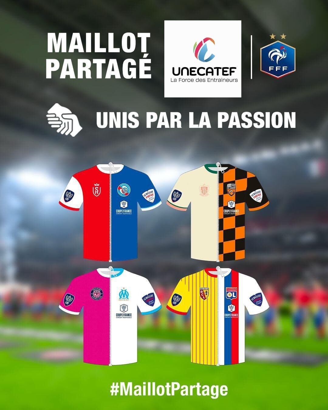 Le slogan, « Unis par la même passion », associé à ce « Maillot Partagé » est un message à tous les supporters et amoureux du football, pour porter les valeurs de tolérance, de bienveillance et de respect – de l’adversaire, de l’arbitre, des fans adverses -, une invitation à les partager du terrain aux tribunes. Aujourd’hui et demain.